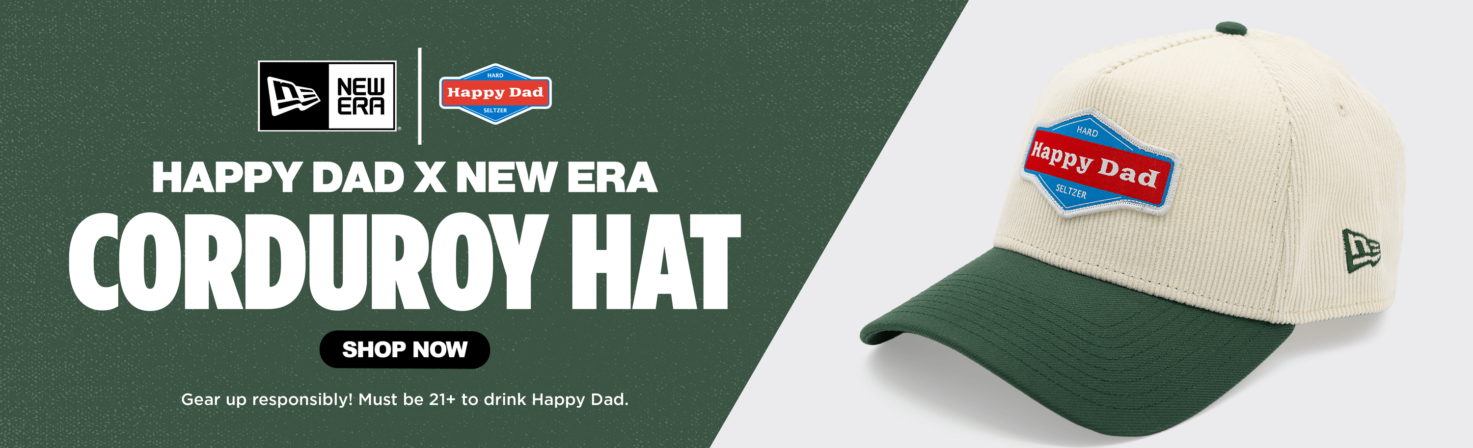 Happy Dad x New Era Corduroy A-Frame Snapback Hat (Cream/Green)
